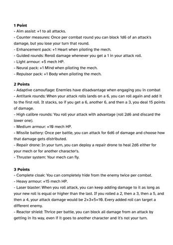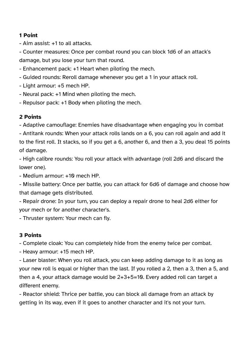 - 1.4: Mech type descriptors (Give your mech a unique appearance with three random generators to get inspired by!) ✔️